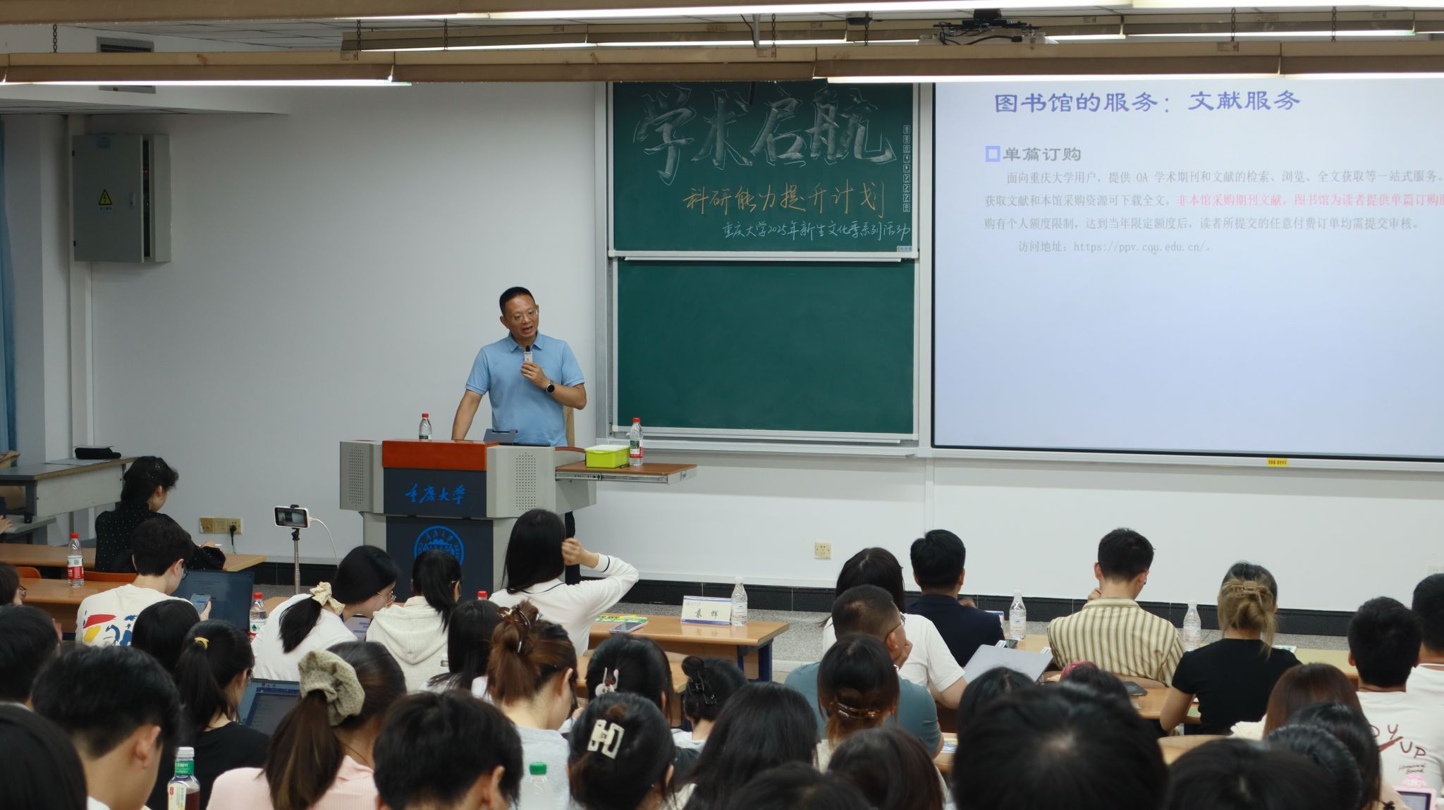 2025年10月中旬,由共青团重庆大学委员会、重庆大学图书馆主办,重庆大学研究生会承办的重庆大学2025年新生文化季系列活动之“共循一脉学术薪火”——“学术启航”研究生科研能力提升计划活动,分别在沙坪坝校区(A校园)研究生院206教室与科学城校区(虎溪校园)一教D1131教室成功举办。活动特邀材料科学与工程学院教授张育新、管理科学与房地产学院教授向鹏成、重庆大学图书馆副研究员袁辉担任主讲嘉宾,线上线下共吸引近两千名研究生参与。